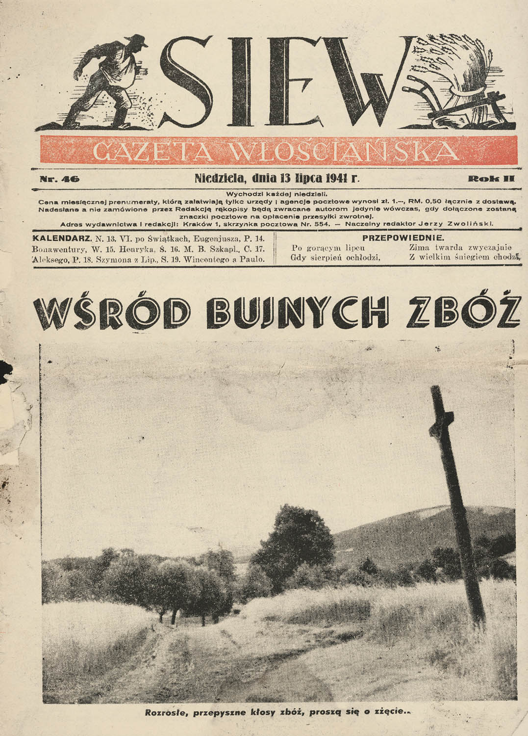 Dokument o nazwie "SIEW" Gazeta Włościańska Nr 46 13 lipca 1941