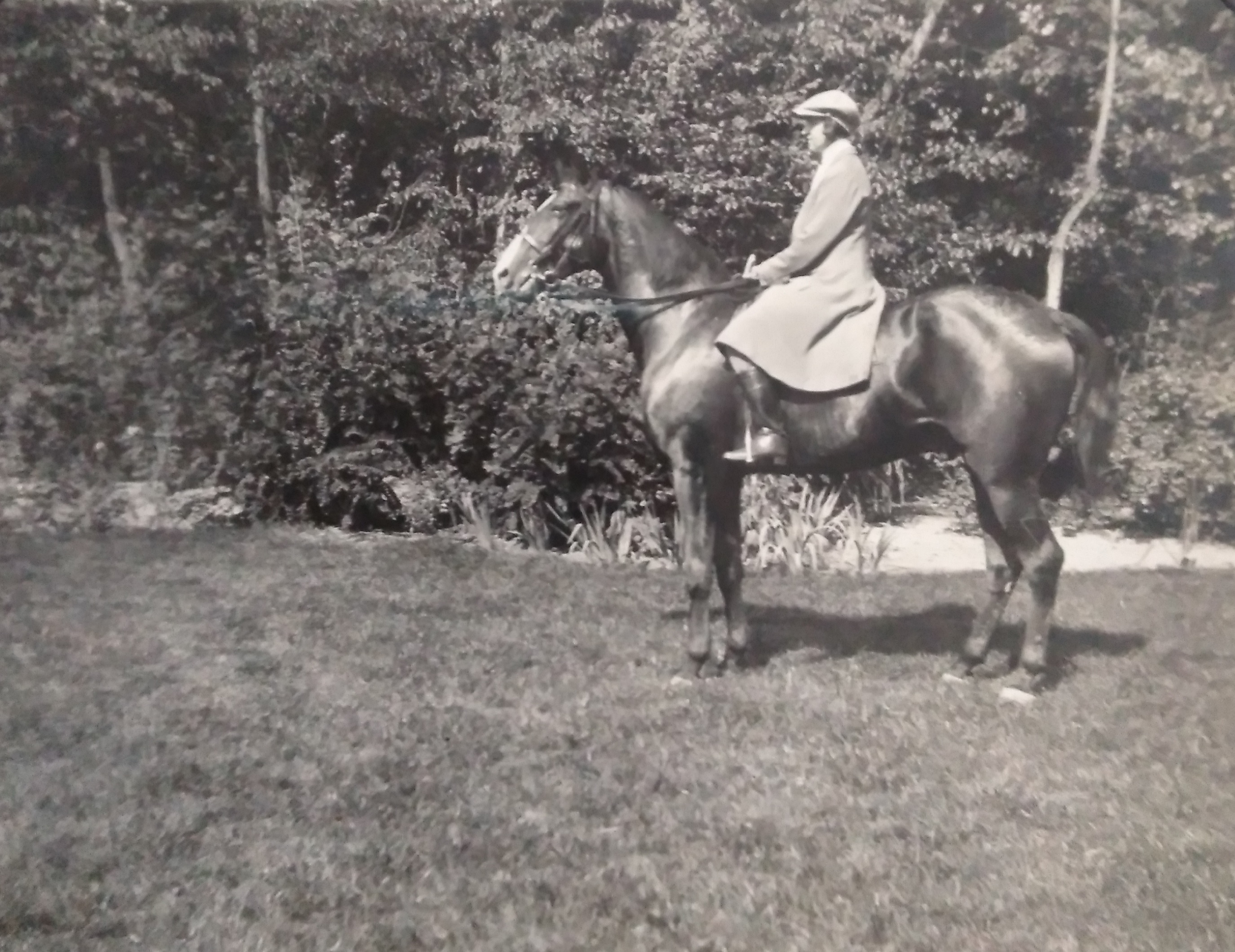 Na fotografii na koniu: Maria Róża "Marula" z Zamoyskich Kwilecka, żona